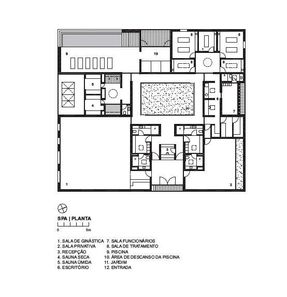 The spa built in Fasano Las Piedras hospitality complex is a single-story concrete rectangular volume, where rooms are placed in the perimeter leaving an open indoor garden in the centre of the building, around which all circulations evolve.