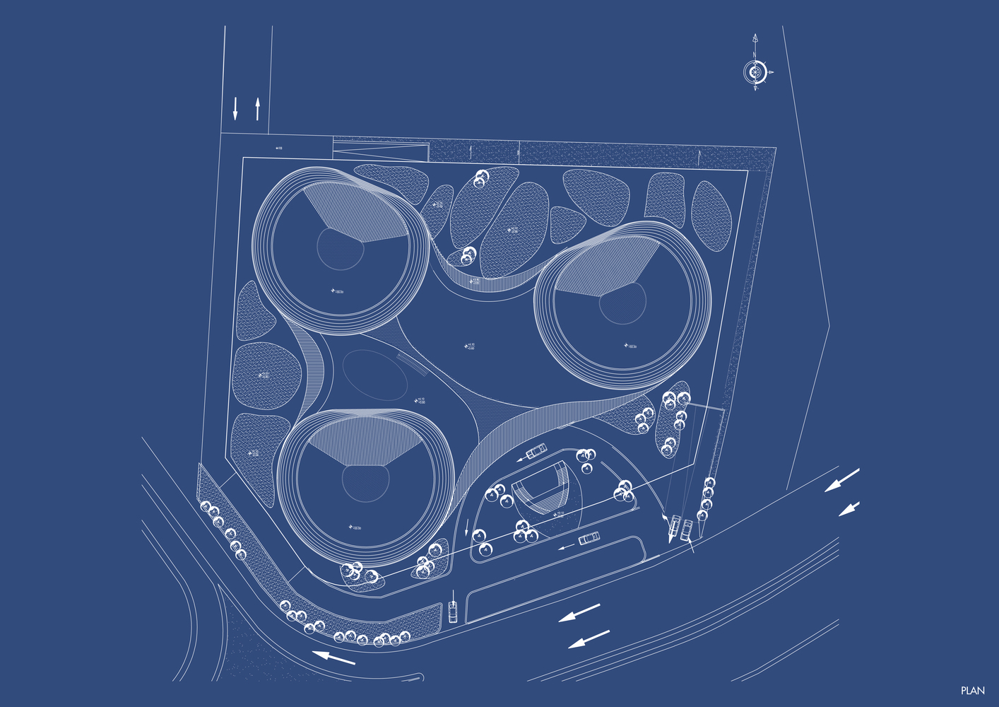 By removing the corners fluid form enables a transitive connection both with the other structures and surrounding roads.