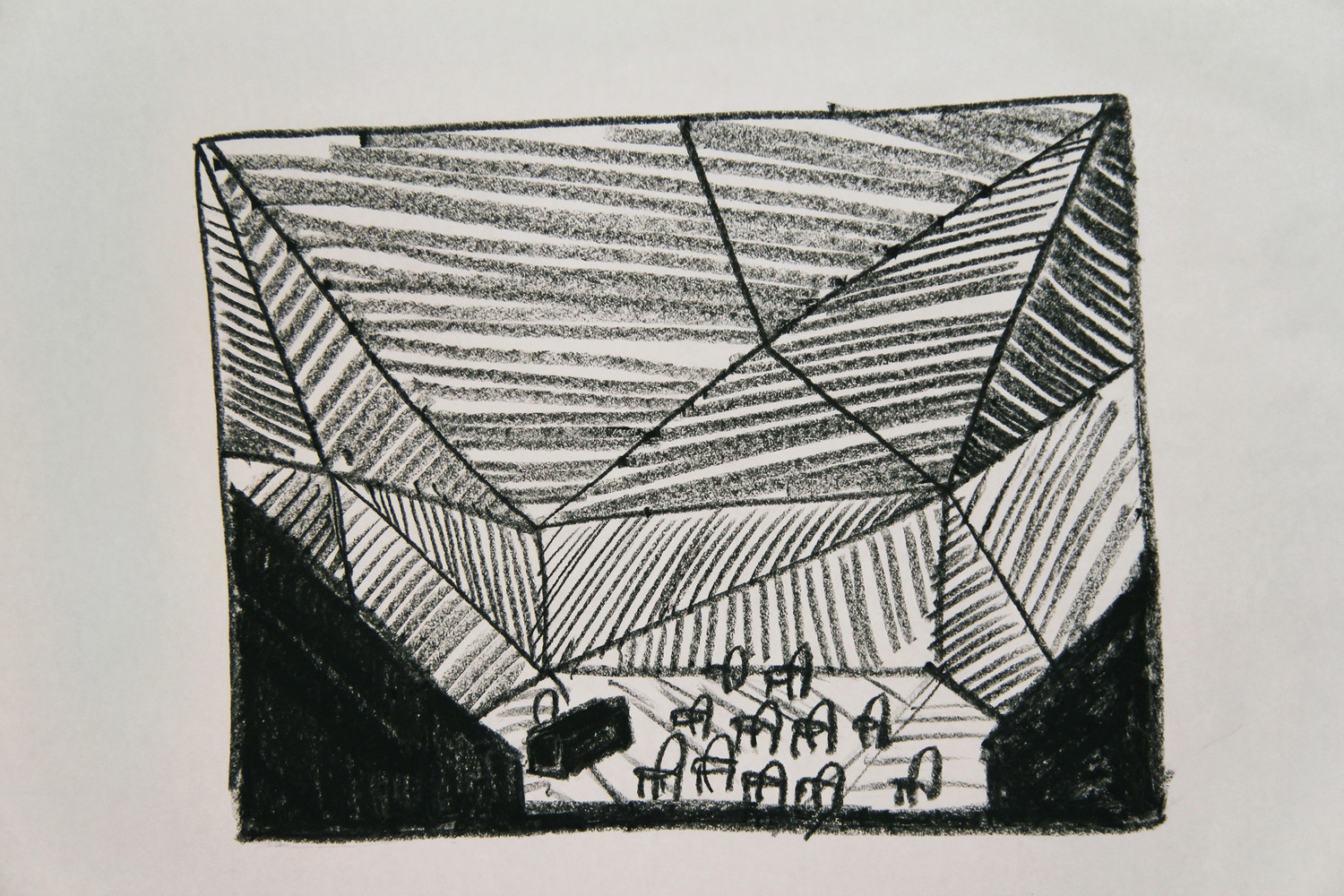 Every edge or slope on the building could be found in its real, natural topography. In between of the metal vectors, which represent the mountain ridges, there is growing sedum.