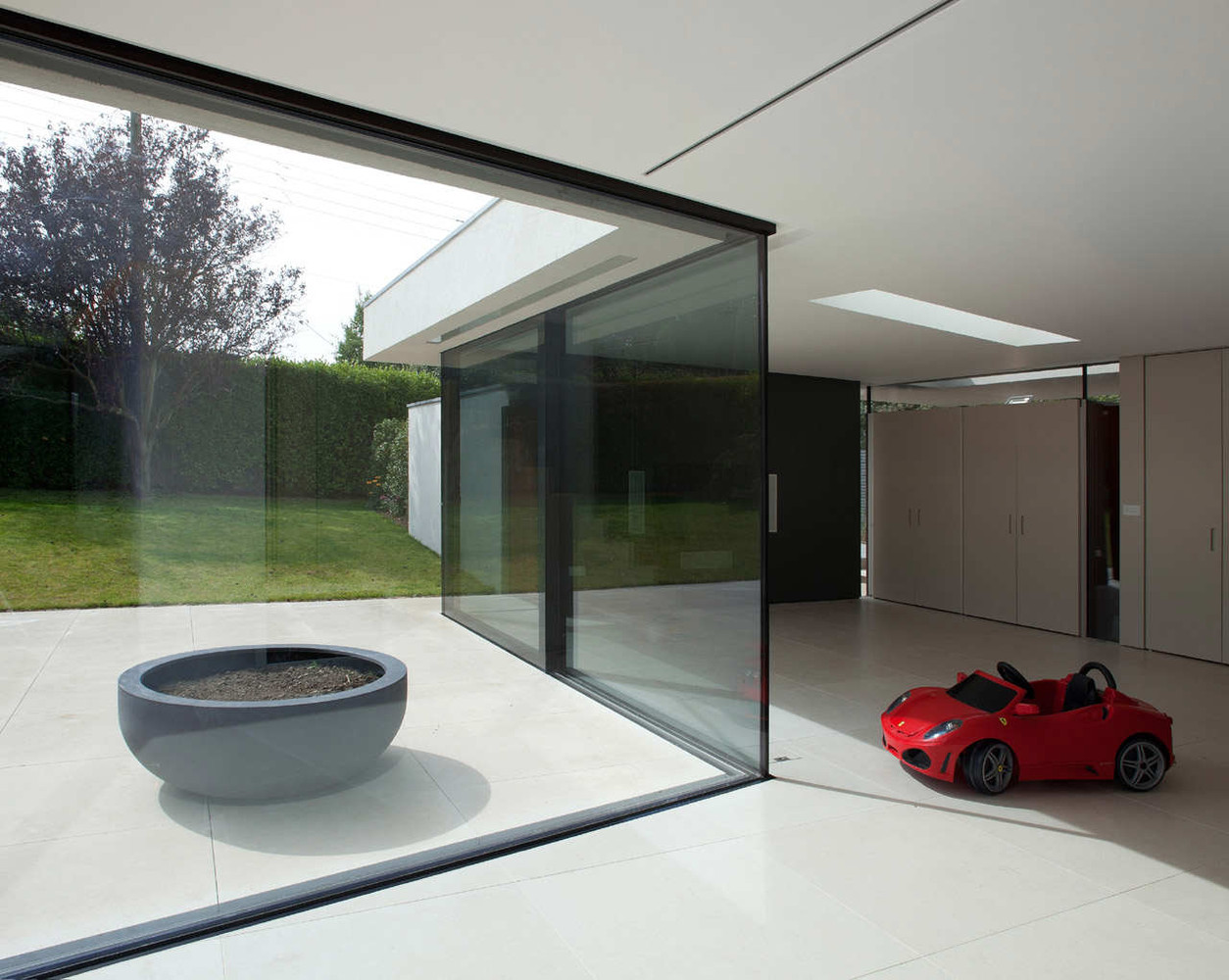 Further enclosure is provided by high performance thermal and solar reflecting glazing in aluminium frames with open and close to make a direct connection between the internal and external spaces.
