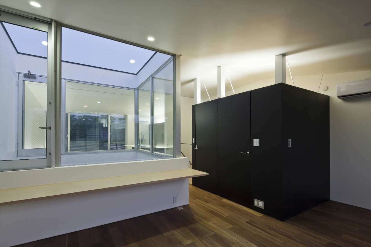 In contrast, the interior of the house, which centers on the internal courtyard, is an open, generous and well-lit expanse of space.The first floor houses several small, comfortable private spaces, such as a bedroom and audio room.