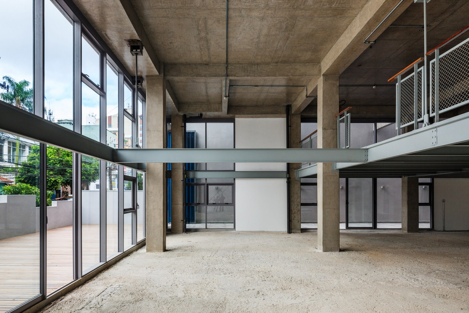 The construction of the upper levels expresses the concept of a flexible building, with overlapping slabs, high ceilings and a facade with elements positioned alternately, providing diverse units and a great freedom to occupy their interiors.