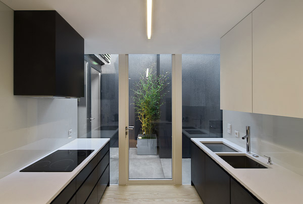 In the remaining construction, we consider a new occupation, demolishing the small compartments and creating an only and new space (kitchen/laundry and garage) with an interior courtyard.
