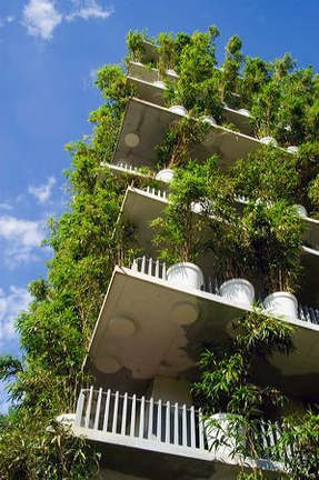 The inhabitants enjoy the rustling of bamboo and a light filtered by the foliage. The elevator is on the façade and, glazed on both sides,