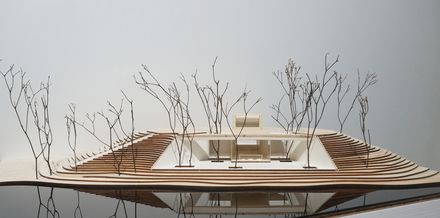 To remain trees along the river perfectly intact, the building plan avoids all trunks. Shape of the plan looks like branches extending under the existing forest.