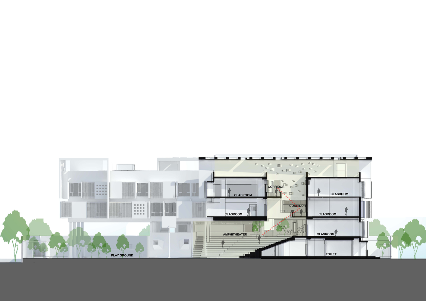There is a play of volume and light along the corridor. Wind tunnels are located after every two classrooms, which open into the corridor areas keeping the entire school campus including all the classrooms well ventilated and naturally lit, thus reducing energy consumption.