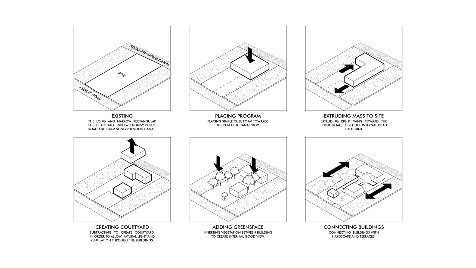 A site is located in the suburb of Thailand, Suphanburi Province. The deep and narrow plot is a drawback, yet has its own beauty itself.