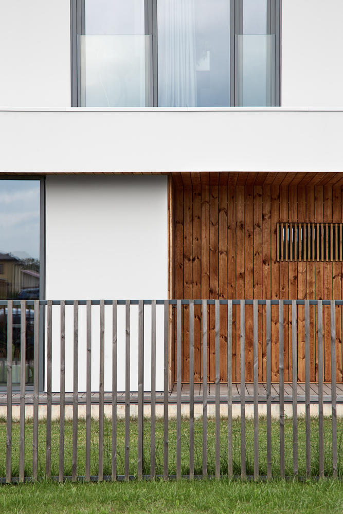 Façade detailing is reduced to the minimum consisting of cool grey aluminium window frames and steel railing with almost invisible, subtle steel cables.