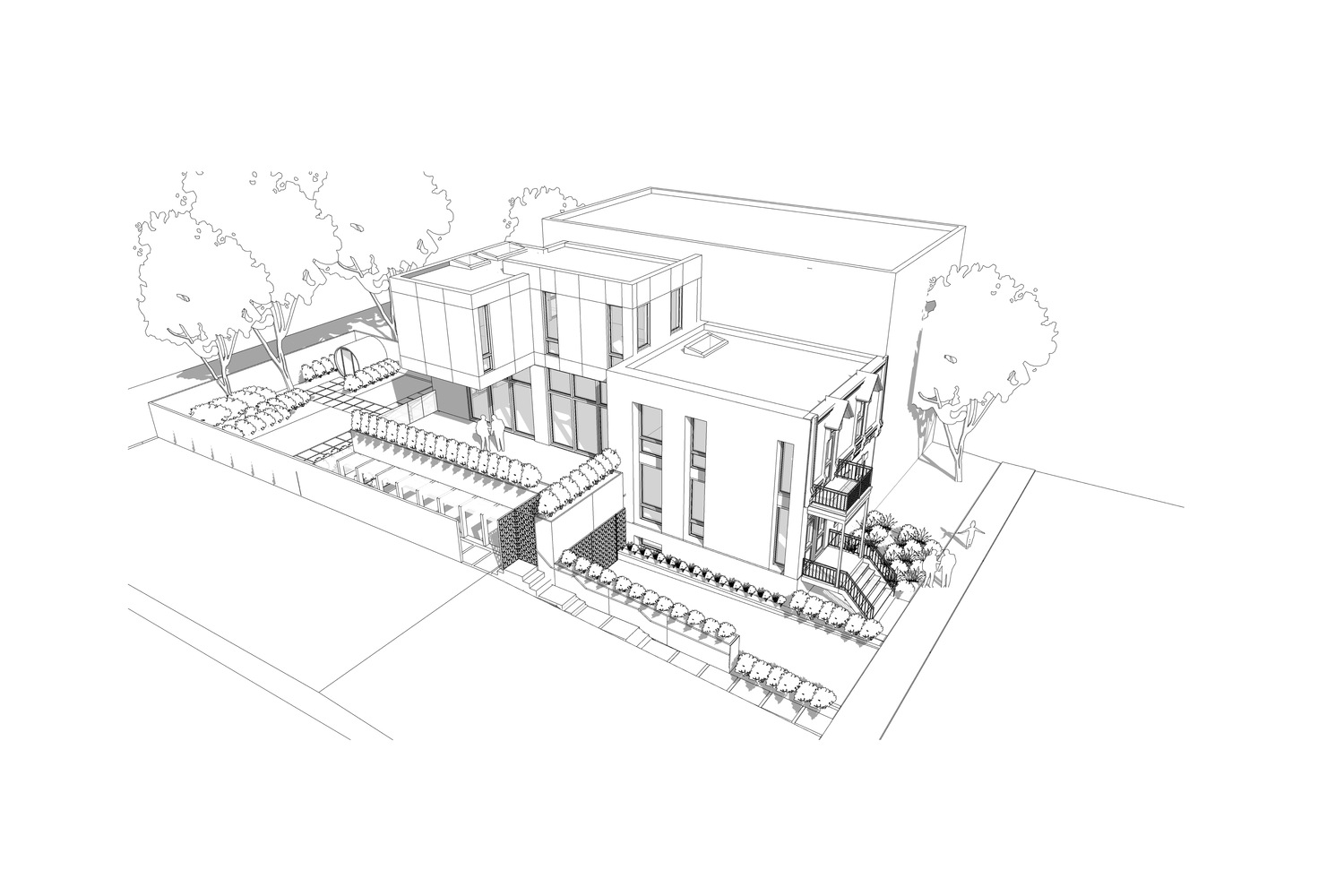 They wanted to transform an old 1880s duplex into a multi-unit and harmonize the original style of the building with a decidedly contemporary and uncluttered addition.
