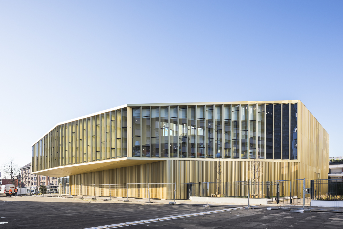 Thanks to its specific volume and dynamic identity, the new facility fits naturally into its context by symbolically signaling its presence in the heart of this district undergoing a major redevelopment.