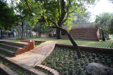 Maintenance of a open landscape in a prominent area like this demands additional attention and the requirement of a semi-open food kiosk emerged as the catalyst to maintain the site as well as making the space lively.