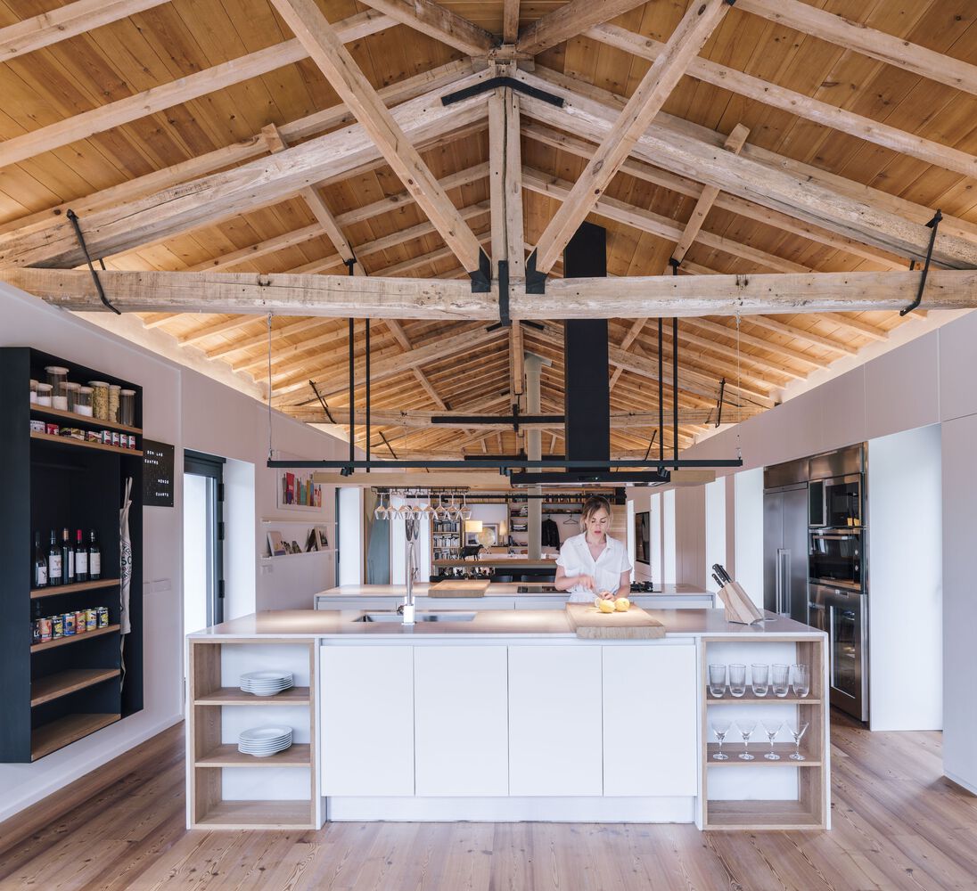 It is the heart of the dwelling, where the absolute protagonist is the large wooden roof, which is manifested in its entirety.