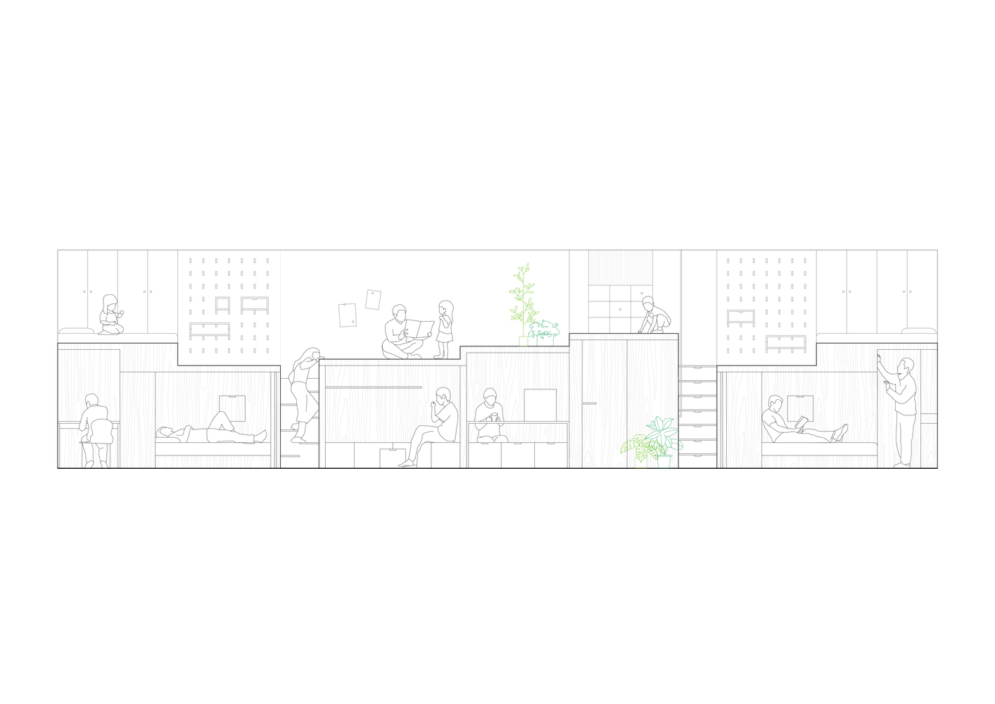 The size of each box is decided according to the height of people’s activities in different functional areas.