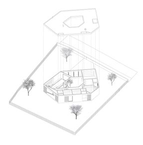 The final configuration of the house is defined by two horizontal planes, a floor and a roof which have the same shape embodying and aggregating the experience of the house around the patio.