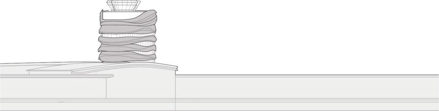 The shingled undulating zinc cladding creates a free-flowing sculpted skin. The material is malleable and modular, and it allows for easy installation in situ around the tower’s perimeter. In addition, zinc support the project’s sustainable mandate and provides an exterior surface that is naturally weathering.