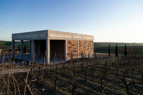 Kitrvs winery is located in the hilly landscape of Pydna at the foot of Mount Olympus, overlooking the Thermaic Gulf of the Aegean Sea. The newly constructed building will be used to process and store wine, produced in the surrounding vineyards.