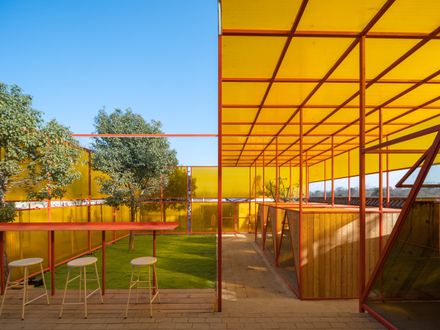 On the other side of the activity area, the sky is open, leaving only a beam in the middle. It forms a contrast between sparse and dense with the kennel area.