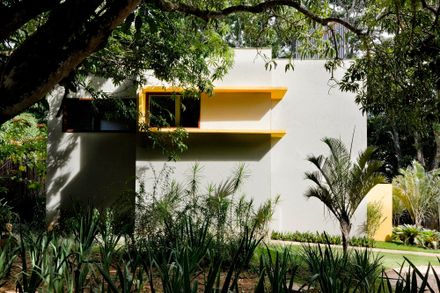 Modernist references and yellow cobogós the façade stand out amidst the trees a loft of 120 square meters designed by architect Ney Lima .