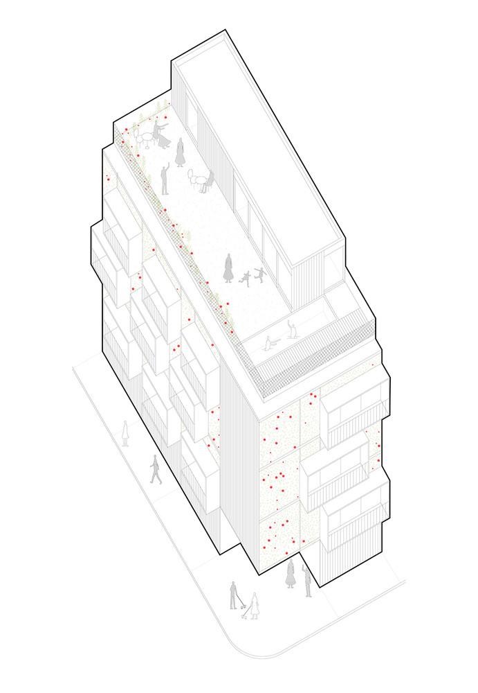 he common areas in the building complement the minimum dwellings in social terms, besides encouraging interaction between users.