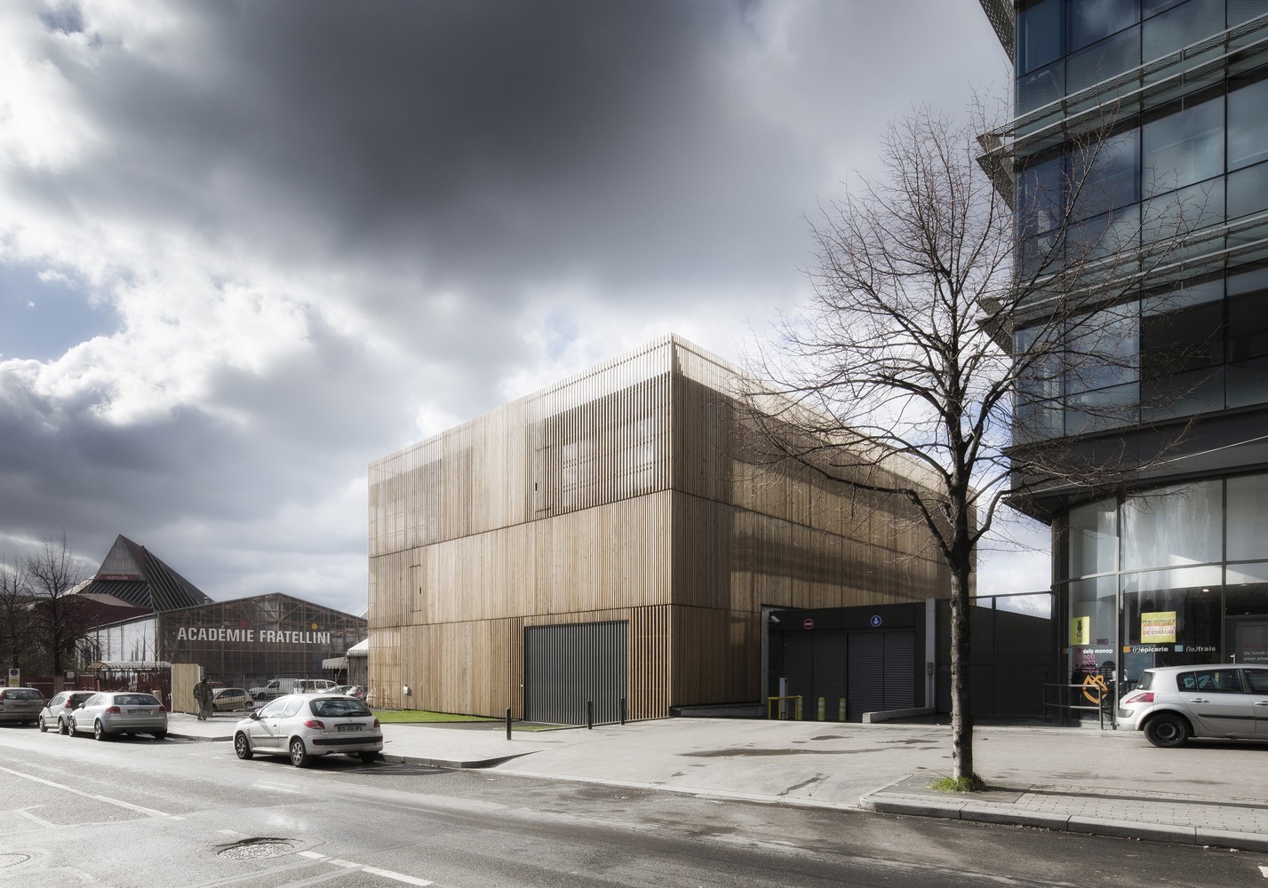 The building is massive in order inertia and saving the project while having a significant environmental writing (wooden facades).