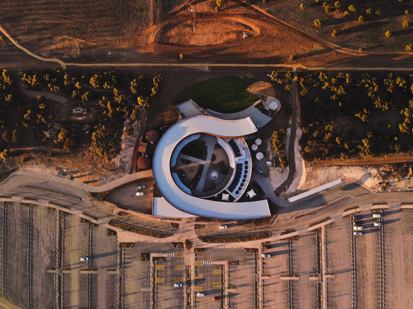 The built form is divided into two distinct elements. The convergence of the curved ribbons represents the intertwining of indigenous and African cultures embodying the inherent connection with the land, plants, and animals.