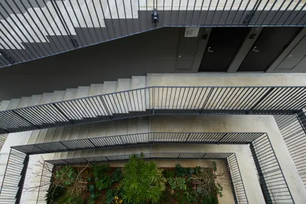 The building is divided into two parts due to the irregular shape of the site, with a courtyard between the two buildings, and the shared hallway and staircase are placed around the courtyard.