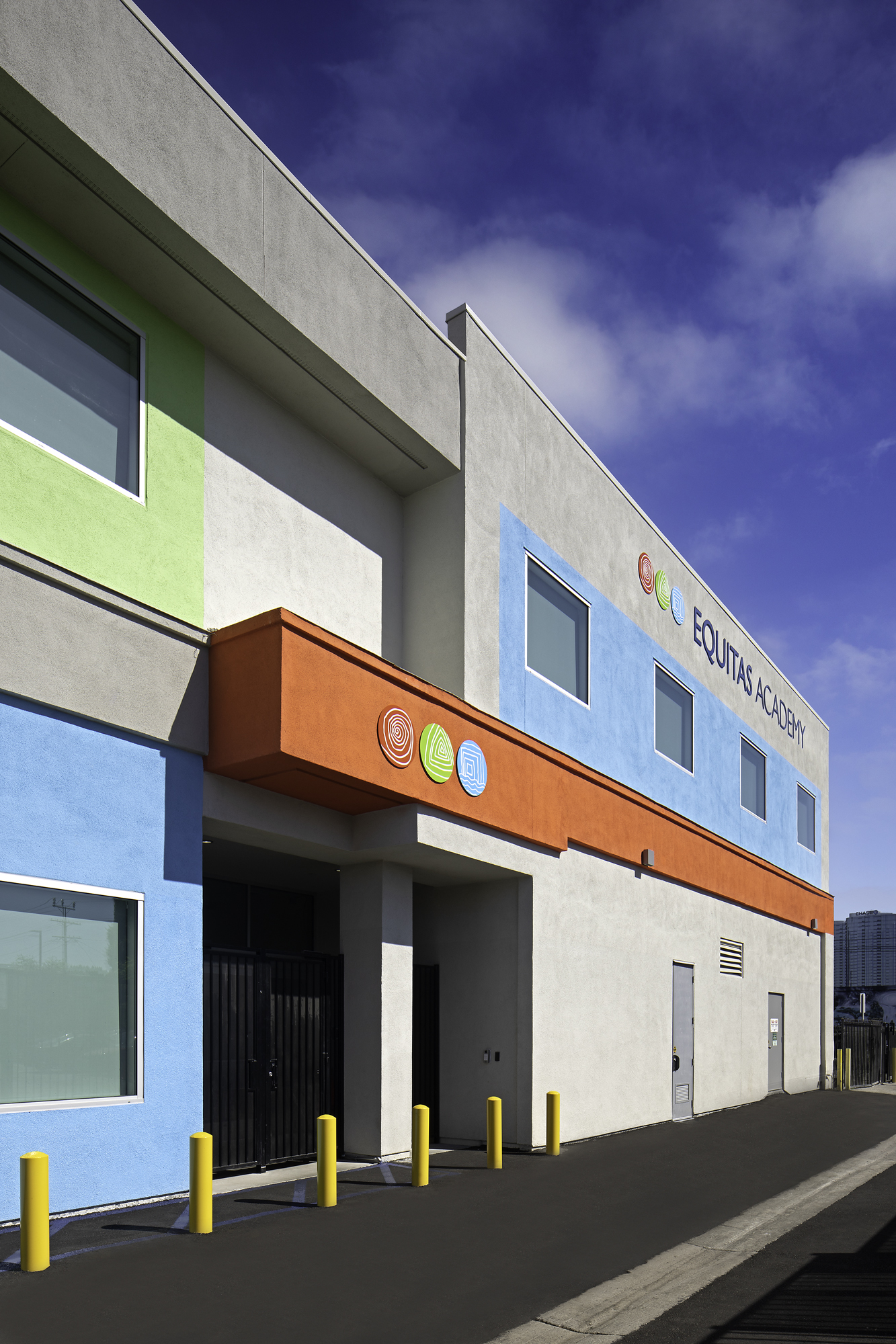 Equitas Academy 5&6 is an adaptive reuse of a former armored car facility converted into two charter elementary schools and district administrative office spaces. Equitas Academy is in the Pico Union neighborhood directly adjacent to downtown Los Angeles.