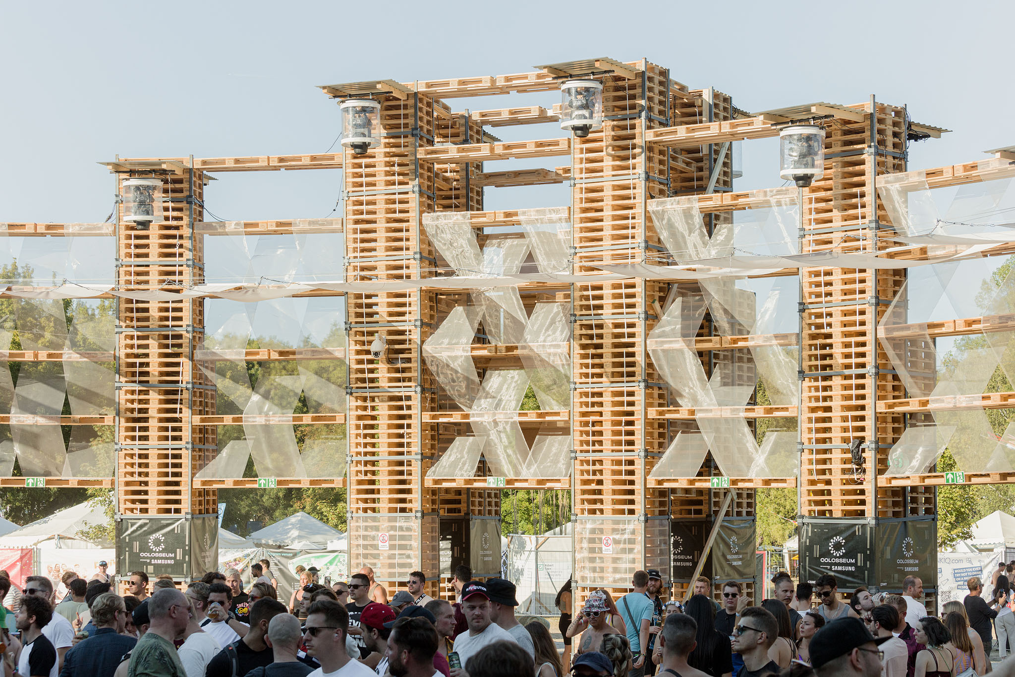 Hello Wood, an internationally renowned architectural firm, was inspired by the pallets lying around the Sziget Festival to create the Colosseum using this unusual material.