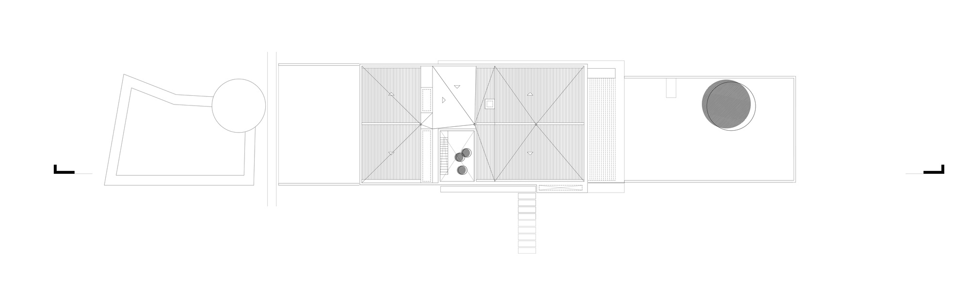It consists of a ground floor built at ground level, structured around two large patios, one at each end, which filter the relationship with the nearest landscape.