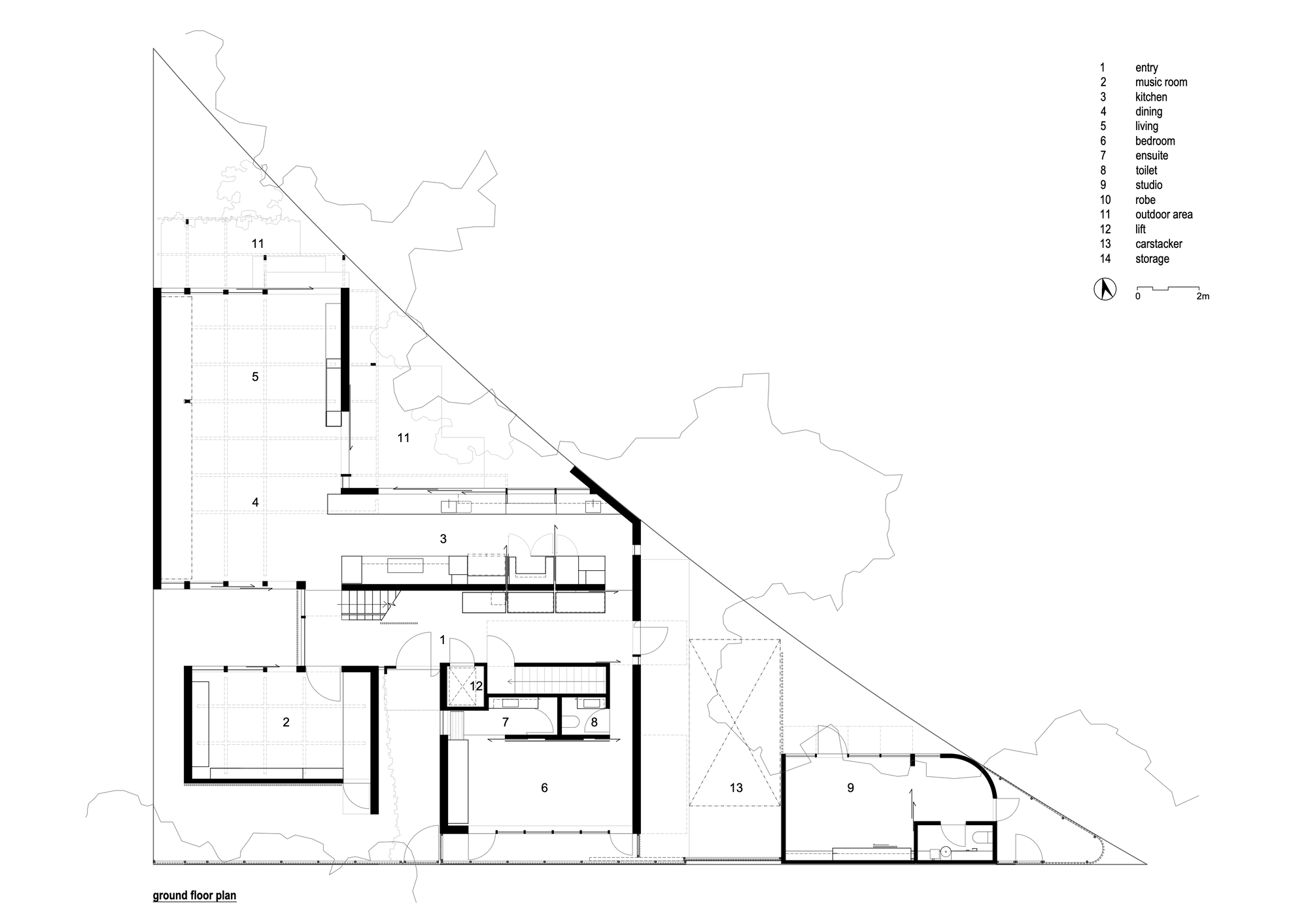 Then we have a not insubstantial brief for a not insubstantial home including basement, lift, car stacker and separate studio.