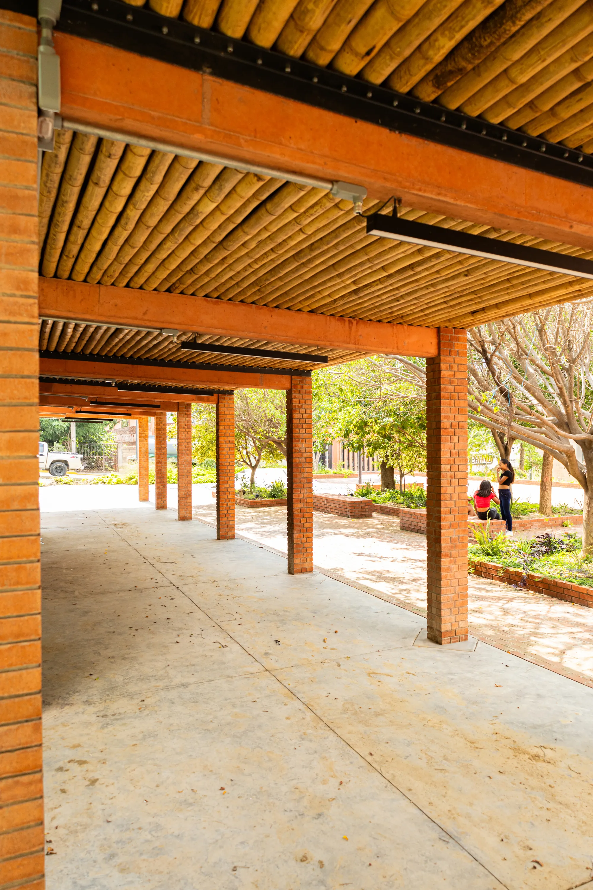It was built with concrete and apparent ochre-colored prefabricated elements, bricks, and clay tiles in the same tones. Cleanliness, order, scale, and respect for its context predominate.