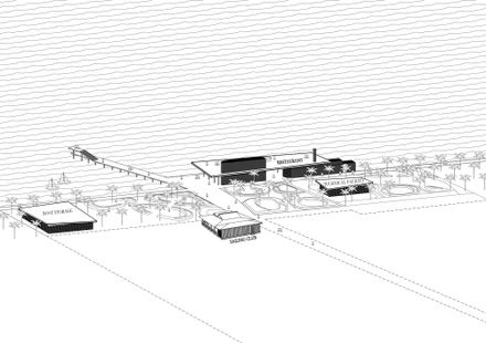 While the broad vision was for a public promenade along the entire coast, a local resort owner engaged us to design an ambitious private restaurant and recreation facility.