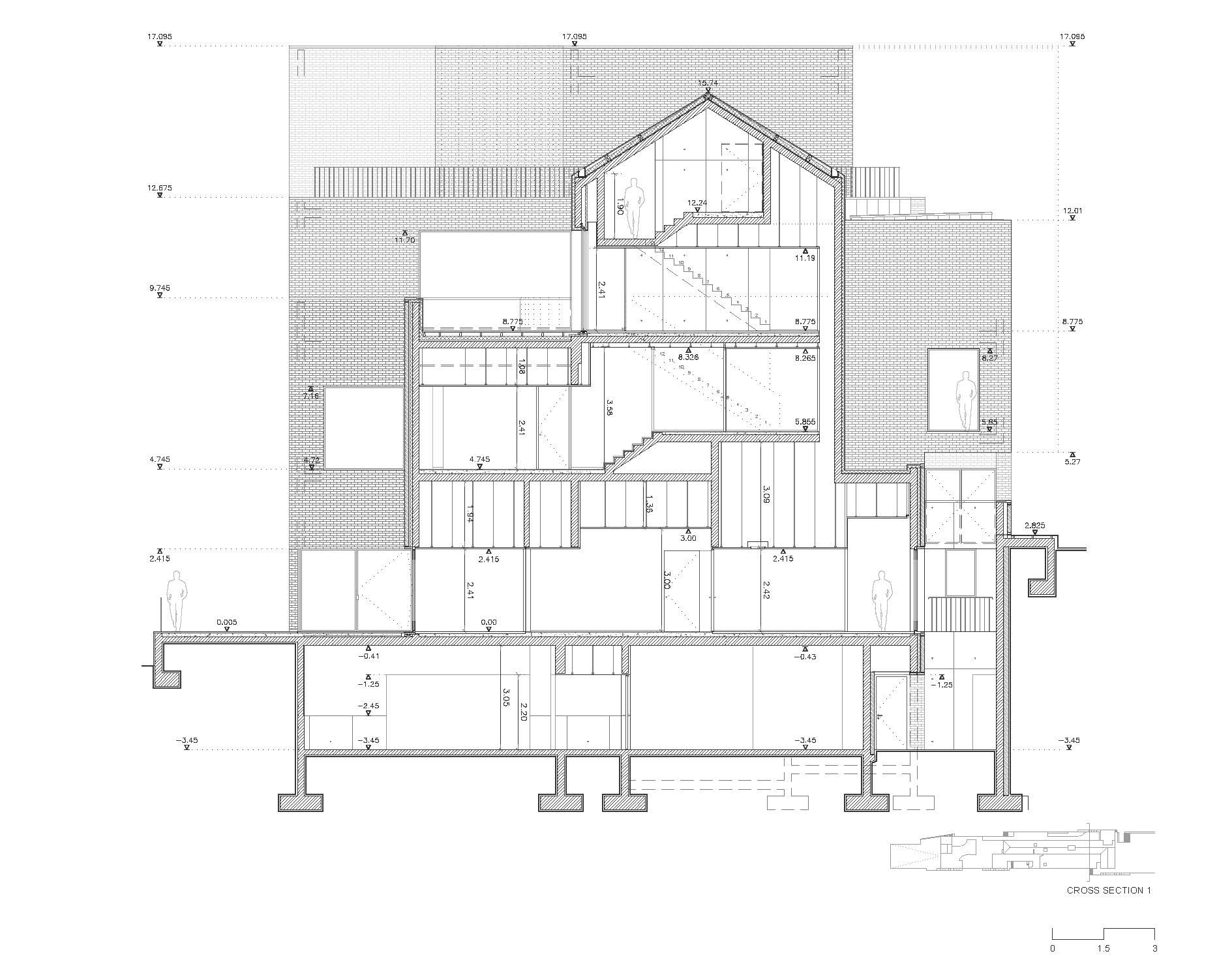 The result is a building with 6.700 sqm a footprint of 1.996 sqm and a maximum height of 17.14 m.