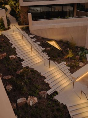These respective apartments handle the topography with intriguing stairways that humanize and pedestrianize an otherwise large built form.