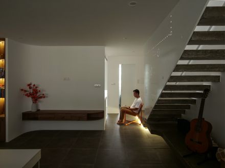 As a game of materials, the setbacks and hollow solid walls are arranged purposefully, helping to regulate light and take advantage of natural ventilation.