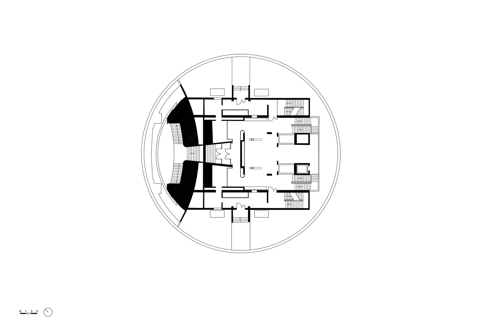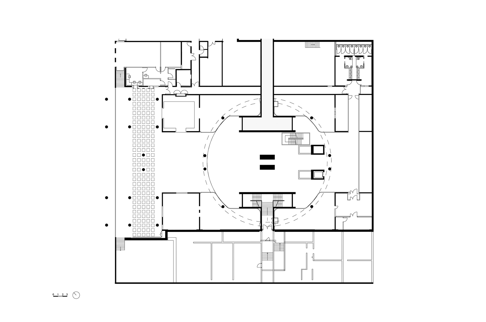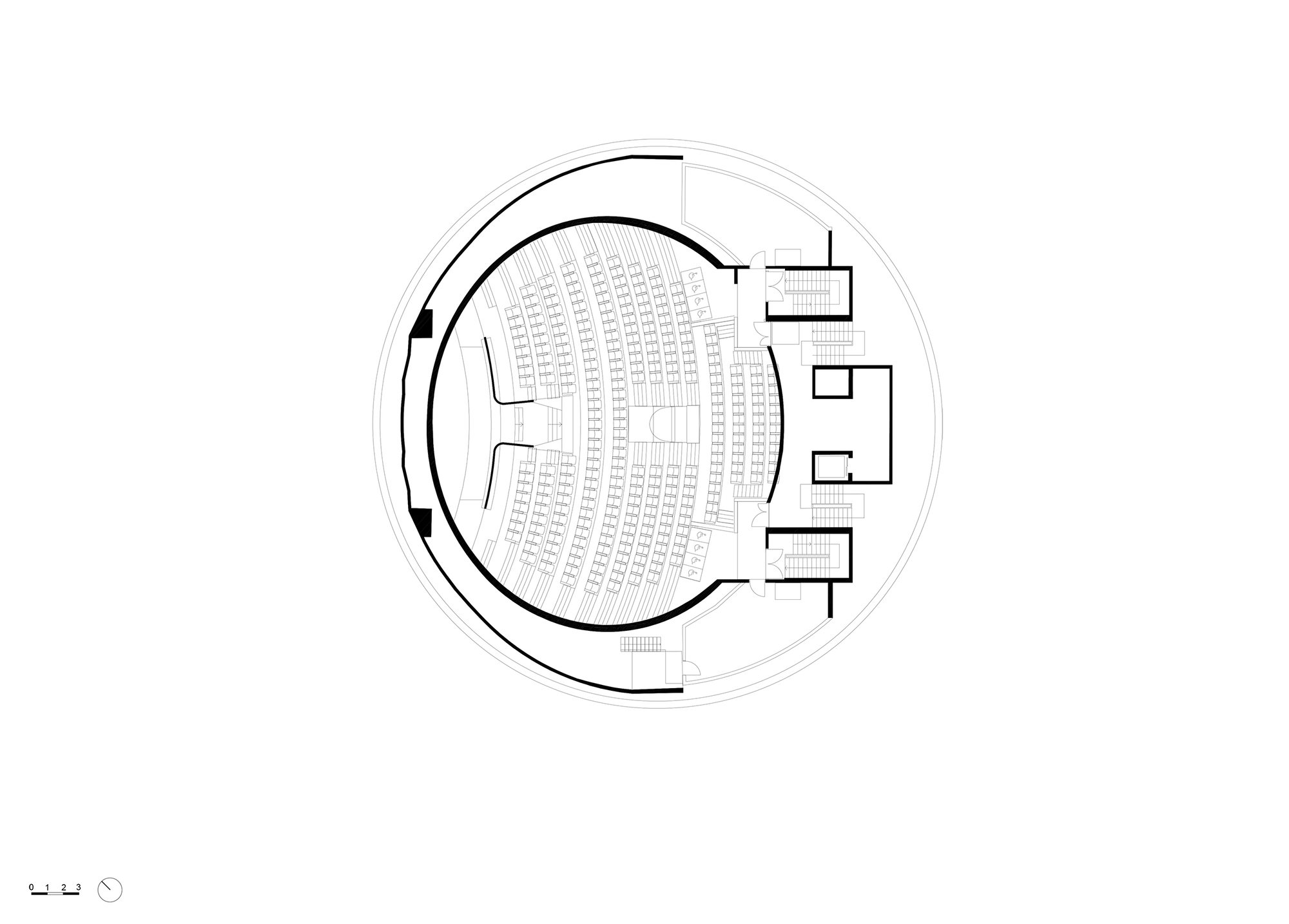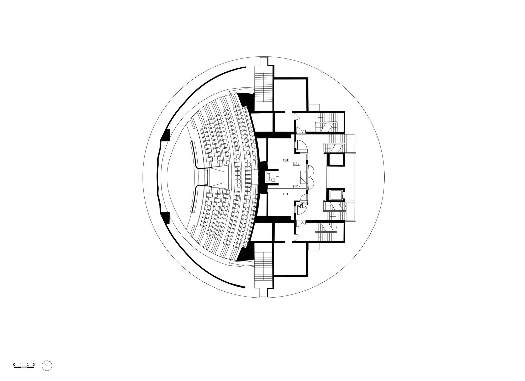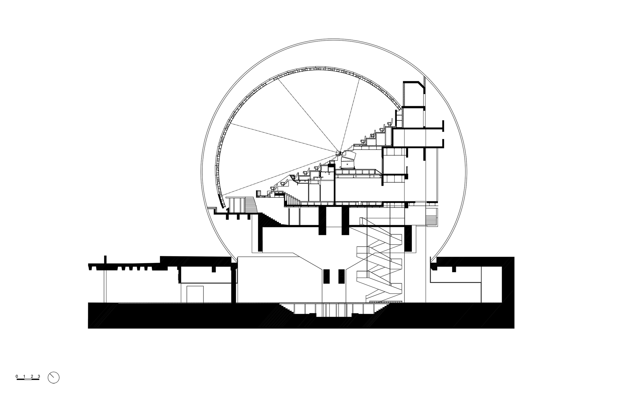 The addition of a platform to accommodate the IMAX projector and another to fill the pit in the hall had to respect this delicate structural balance, which seems to defy gravity.