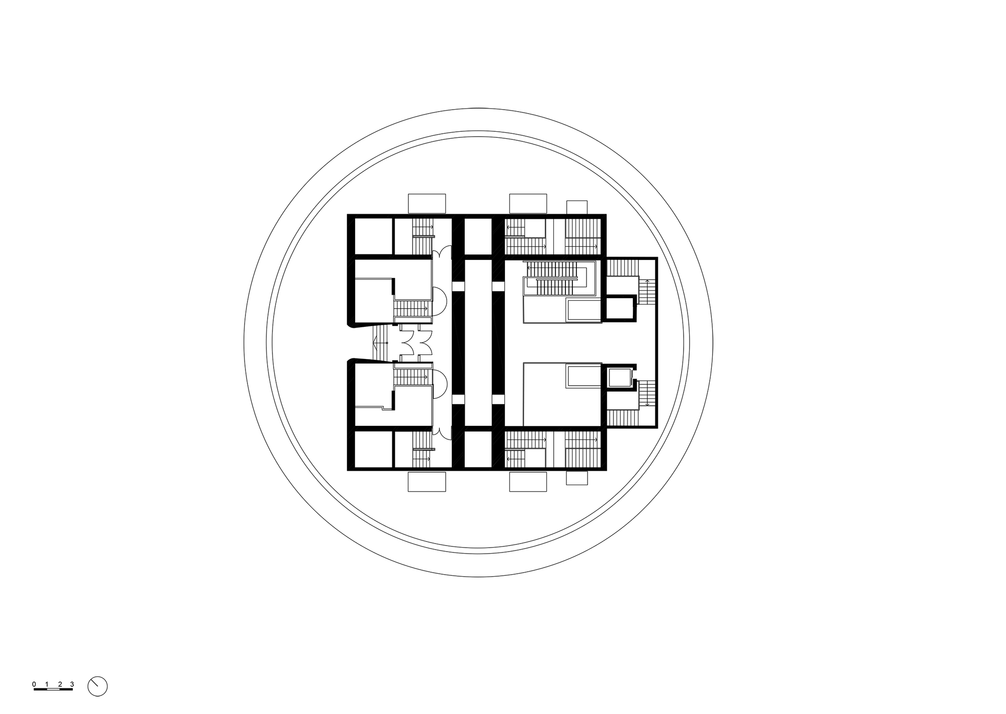 A 360° projected image on the walls encourages visitors to explore the space, where the architectural heritage is once again highlighted through light. Two panoramic elevators and an 11-meter floating staircase pierce through the building, leading from the hall to the entrance of the auditorium.