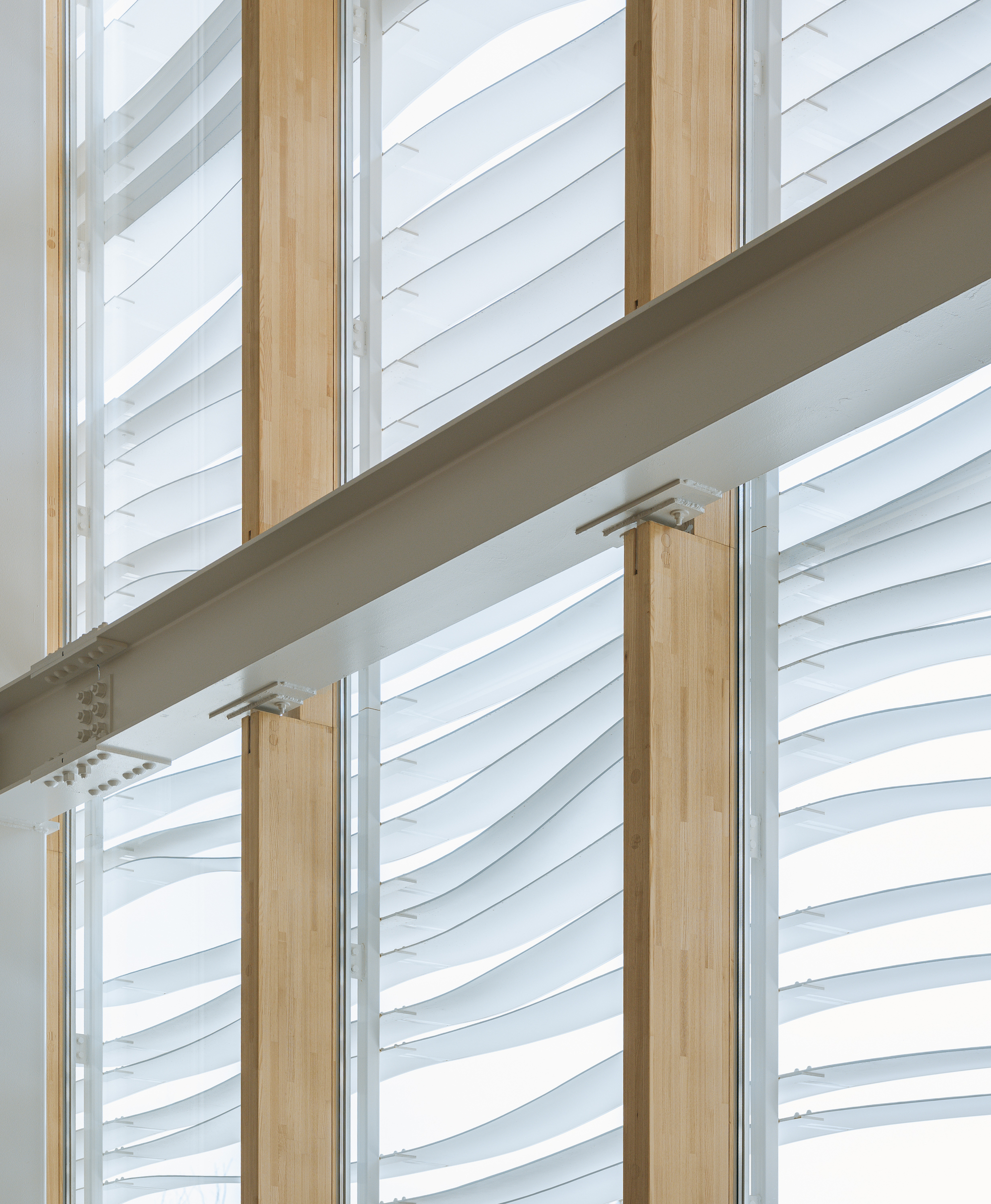 Its facade is adorned with undulating slats that evoke the movement of flowing water.
