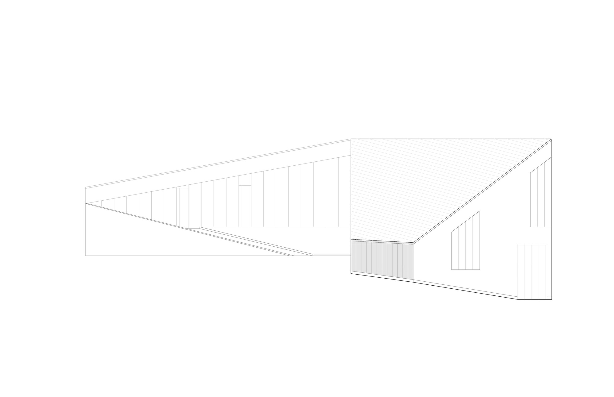 The building's design is both intriguing and unexpected. Its irregular geometry, a convergence of triangular forms, mirrors and influences the internal layout. This interplay of shapes creates a series of surprising spatial experiences.