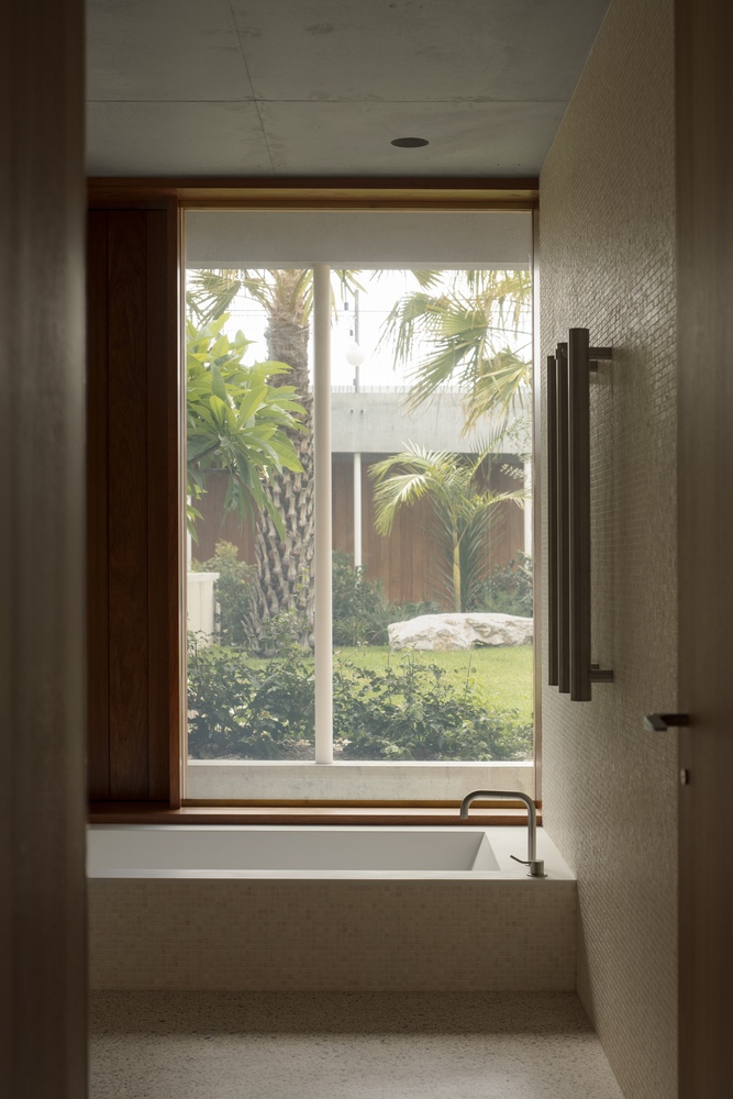 Despite its size, the house never fully reveals its scale from the street. Openings are either massive or minimal – never in between – enhancing its sense of mystery.
