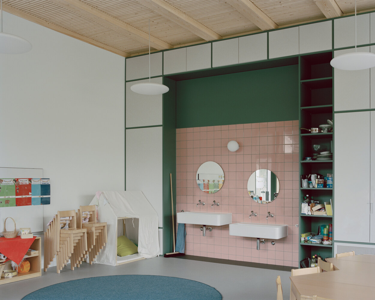 By reoccupying this central area, the new Dürnten school campus succeeds in uniting the school grounds, three kindergartens, and ten regular classes across three sites into a single entity.