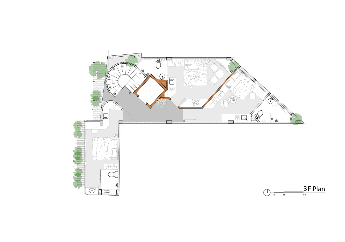 Gia Dinh House is a showcase to how we approached and resolved the challenges of a skewed and irregular site, while continuing our exploration of "living and sharing in urban houses" through the lens of co-living.