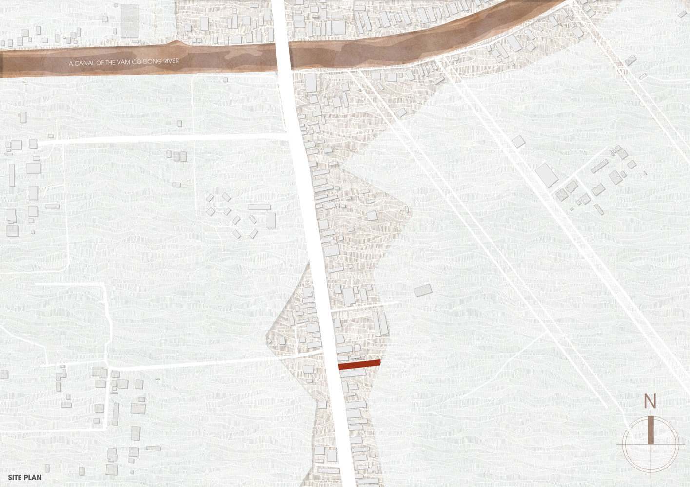 The house is a three-generation family residence located in the rural landscape of Long An, Vietnam.