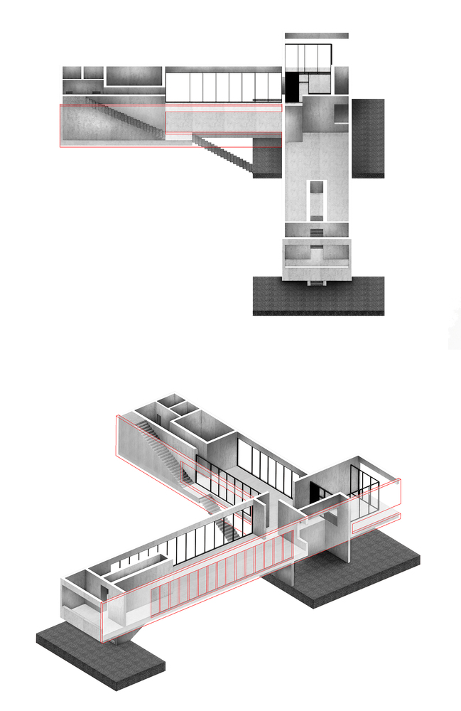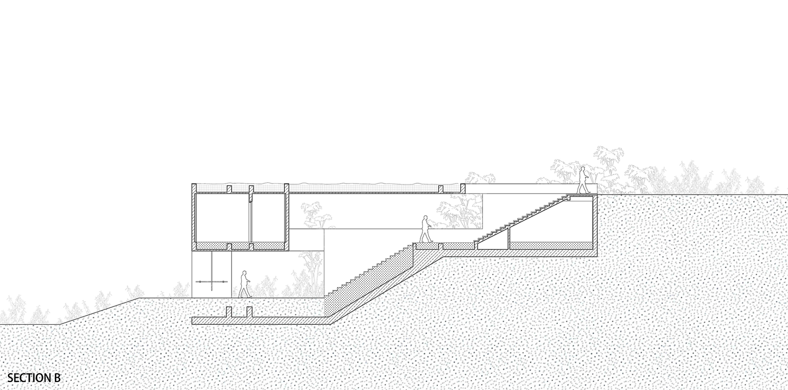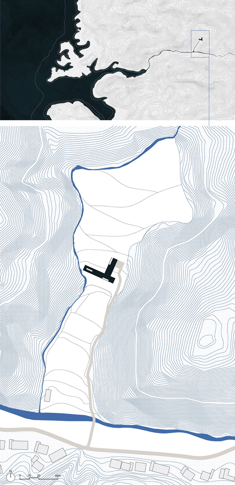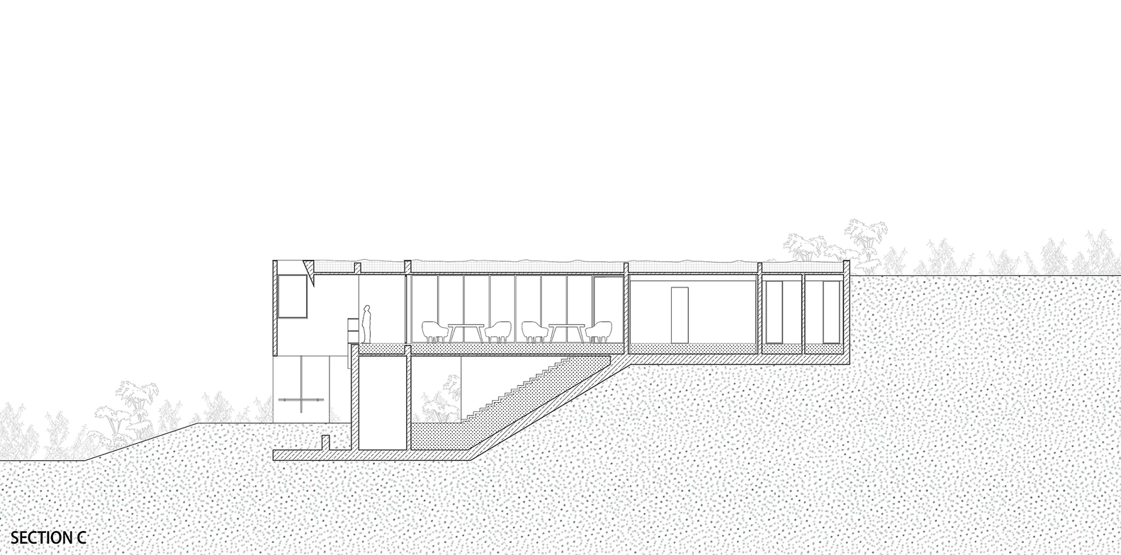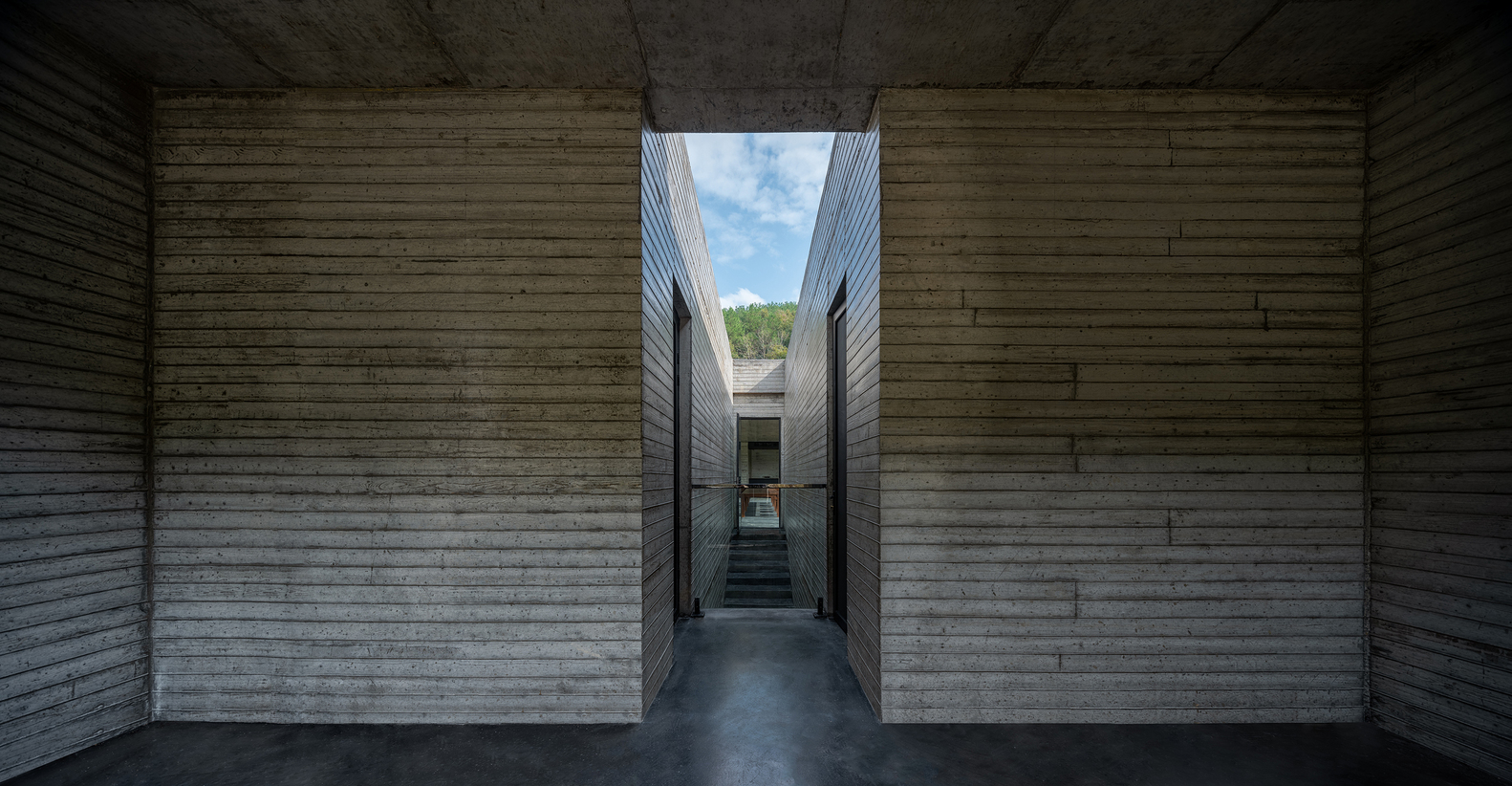 Extending this gesture, the building itself becomes a linear intervention in the terrain: at once abstracting the distant view and transforming into a functional gallery.