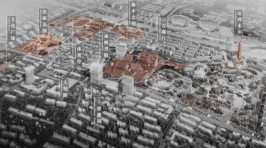 "Nanqiao Source" is a pilot renewal scheme for Nanqiao Town (Fengxian District, Shanghai) that proposes an "One River ∙ Nine Beads" acupuncture approach: