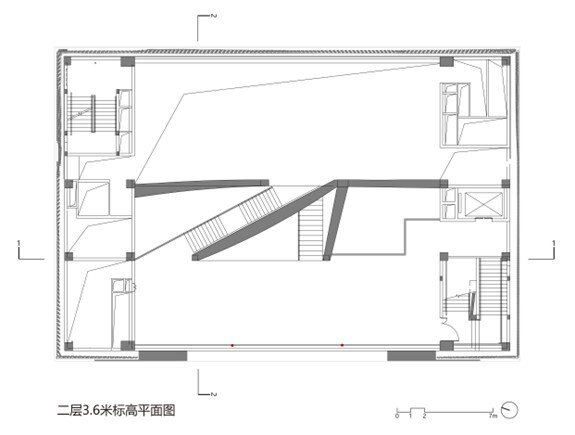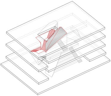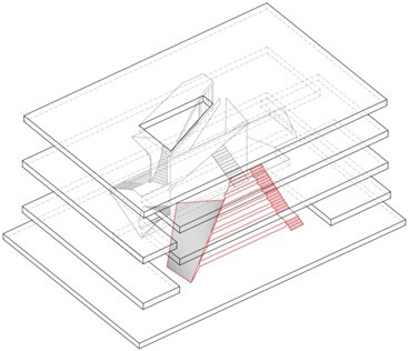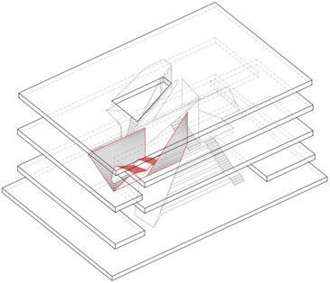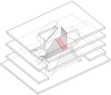 Acting as both load‑bearing spine and climatic chimney, the folded‑plate core merges the path of movement with the path of forces: cantilevered stair treads align with tension zones, while slotted skylights and point apertures create a volumetric light‑well.