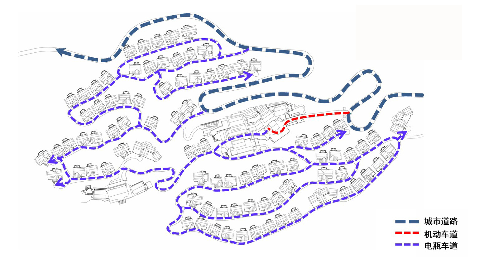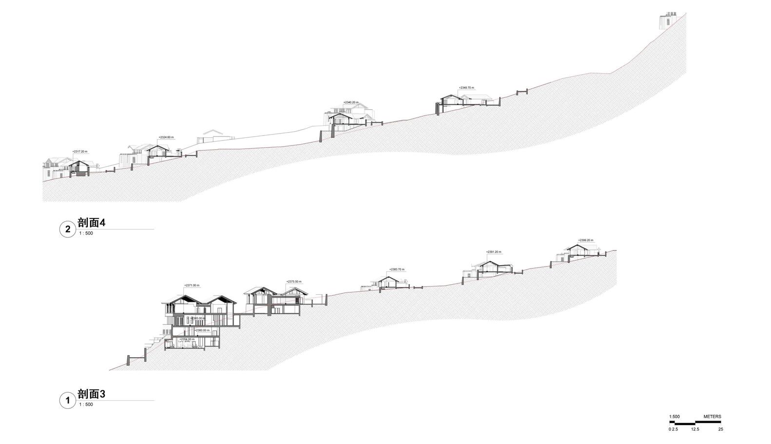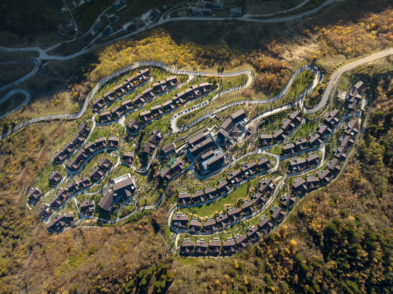 Inspired by scattered Tibetan villages, its layout follows contour lines, with central public zones at the core, blending into the landscape for a "luxury seclusion" feel.