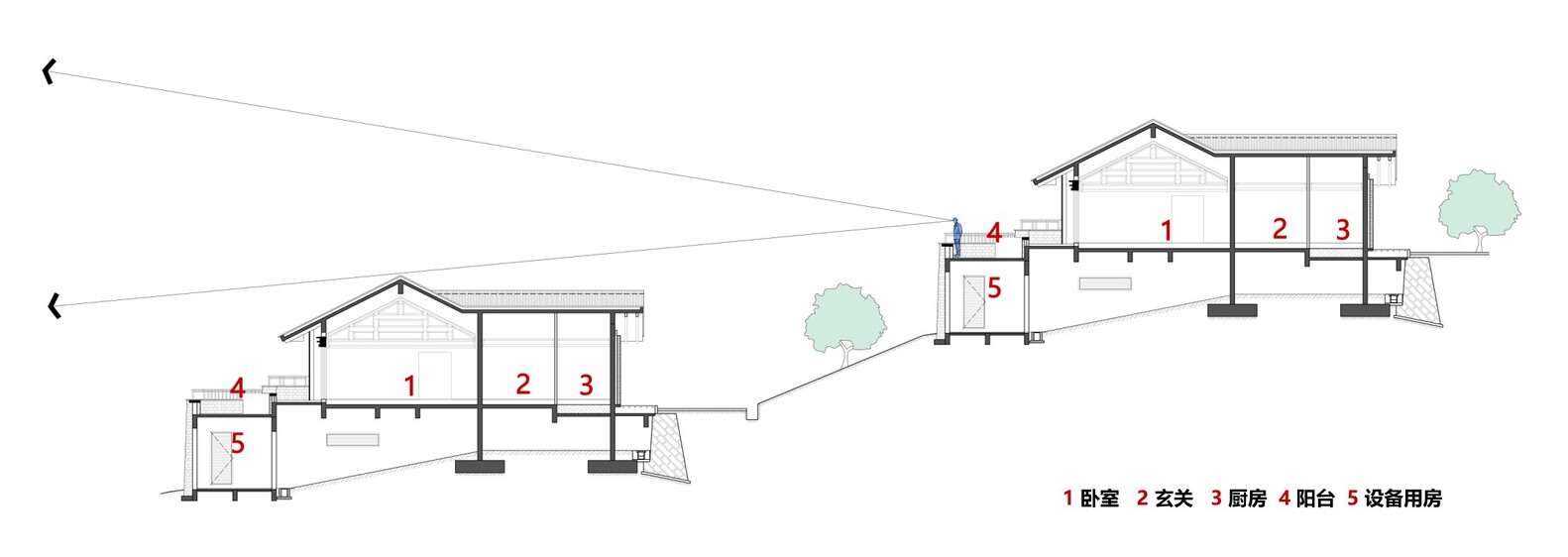 Each guest building has an east-facing terrace, with 7m between rows for unobstructed views of snow-capped mountains and ancient villages.