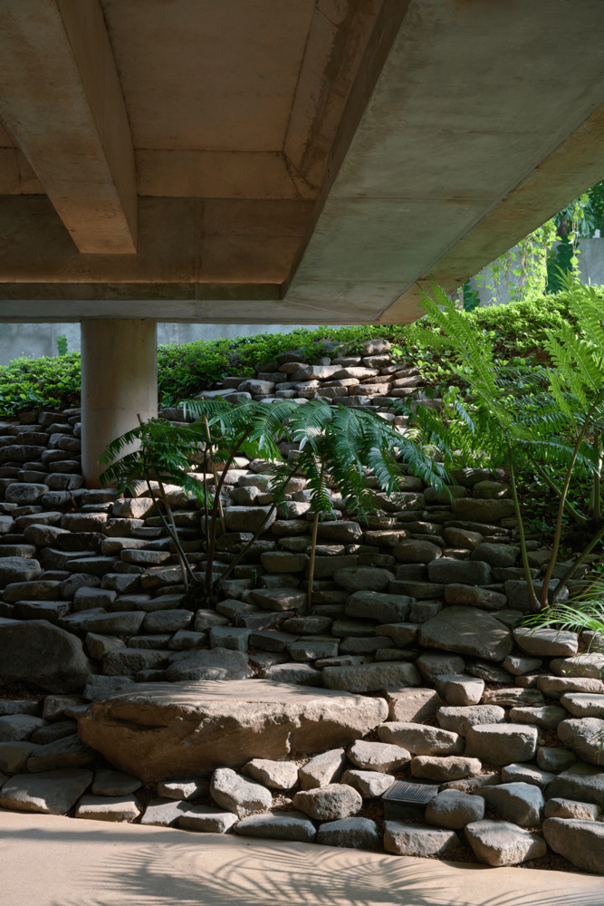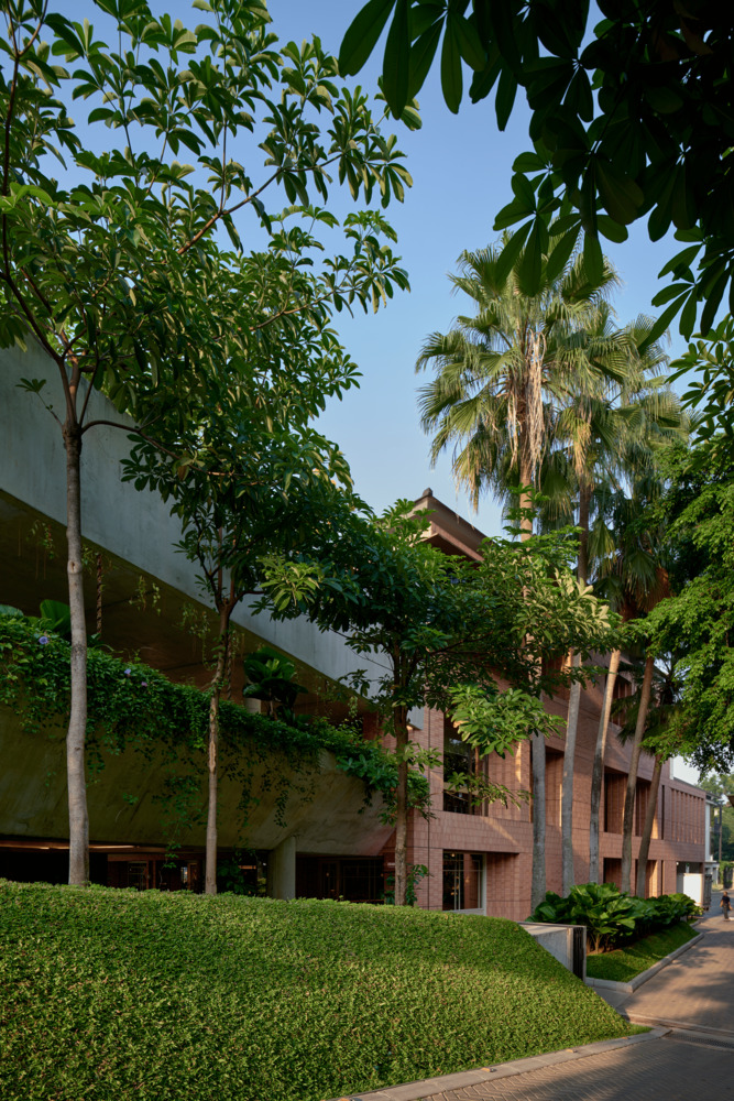 Soil becomes the medium of growth, supporting rooftop gardens and planted terraces. Grass serves as a cooling, living carpet, softening hard edges and framing communal outdoor spaces.