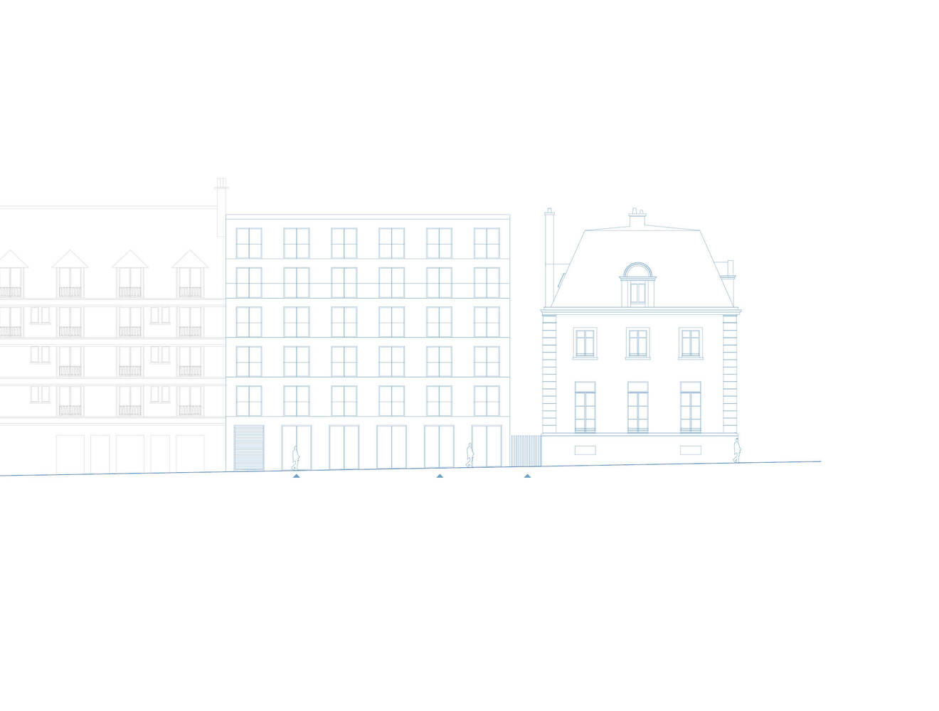 In the interest of urban coherence and to preserve sunlight quality, the project's volumes adapt to the adjoining buildings.